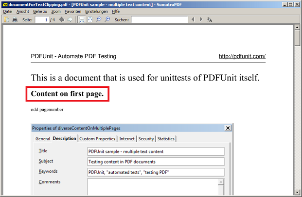 To find the coordinates of the area you want to test, PDFUnit provides the small utility